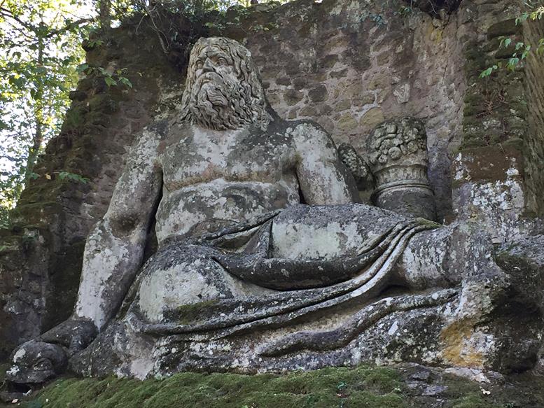 Es war Vicino Orsini (1523–1585), Spross einer einflussreichen römischen Adelsfamilie, der den „Sacro Bosco“ anlegen ließ. Orsini war eine schillernde Persönlichkeit (was später dann den argentinischen Schriftsteller Manuel Mujica Láinez zu dem 1962 erschienenen Roman „Bomarzo“ inspirieren sollte). In seiner intellektuellen Haltung war Orsini einerseits beeinflusst vom liberalen Geist Venedigs, wo er einige Zeit zugebracht und enge Kontakte zu Dichtern und Philosophen geknüpft hatte – und andererseits geprägt von jenen Erfahrungen, die er im politischen Umfeld des Papstes machte. Denn dort herrschten Machtgier, Intrigen und Nepotismus, was für Orsini derart abstoßend war, dass sich der knapp über Dreißigjährige desillusioniert in seinen ererbten Palazzo in Bomarzo zurückzog.