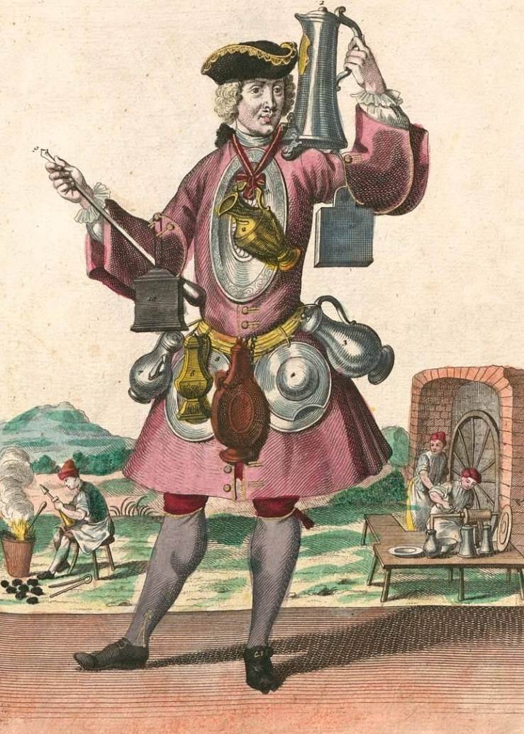 Von der Gärtnerin bis zum Zinngießer, von der Brillenmacherin bis zum Färber – sie und zahlreiche weitere Angehörige der unterschiedlichsten Berufsgruppen bilden einen bunten Reigen allegorischer Figuren, entstanden um 1730, gefertigt vom Augsburger Kupferstecher Martin Engelbrecht.