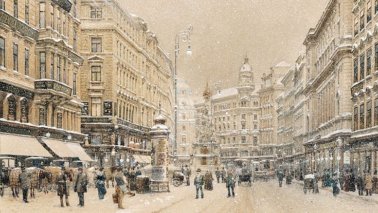 Emma Schlangenhausen, von der diese winterliche Grafik stammt, gehört zu den noch zu entdeckenden österreichischen Künstlerinnen. Veröffentlicht wurde die Illustration im dekorativen Vorlagenwerk „Die Fläche“, die zu den bedeutendsten Dokumenten zur Wiener Kunst um 1900 zählt.